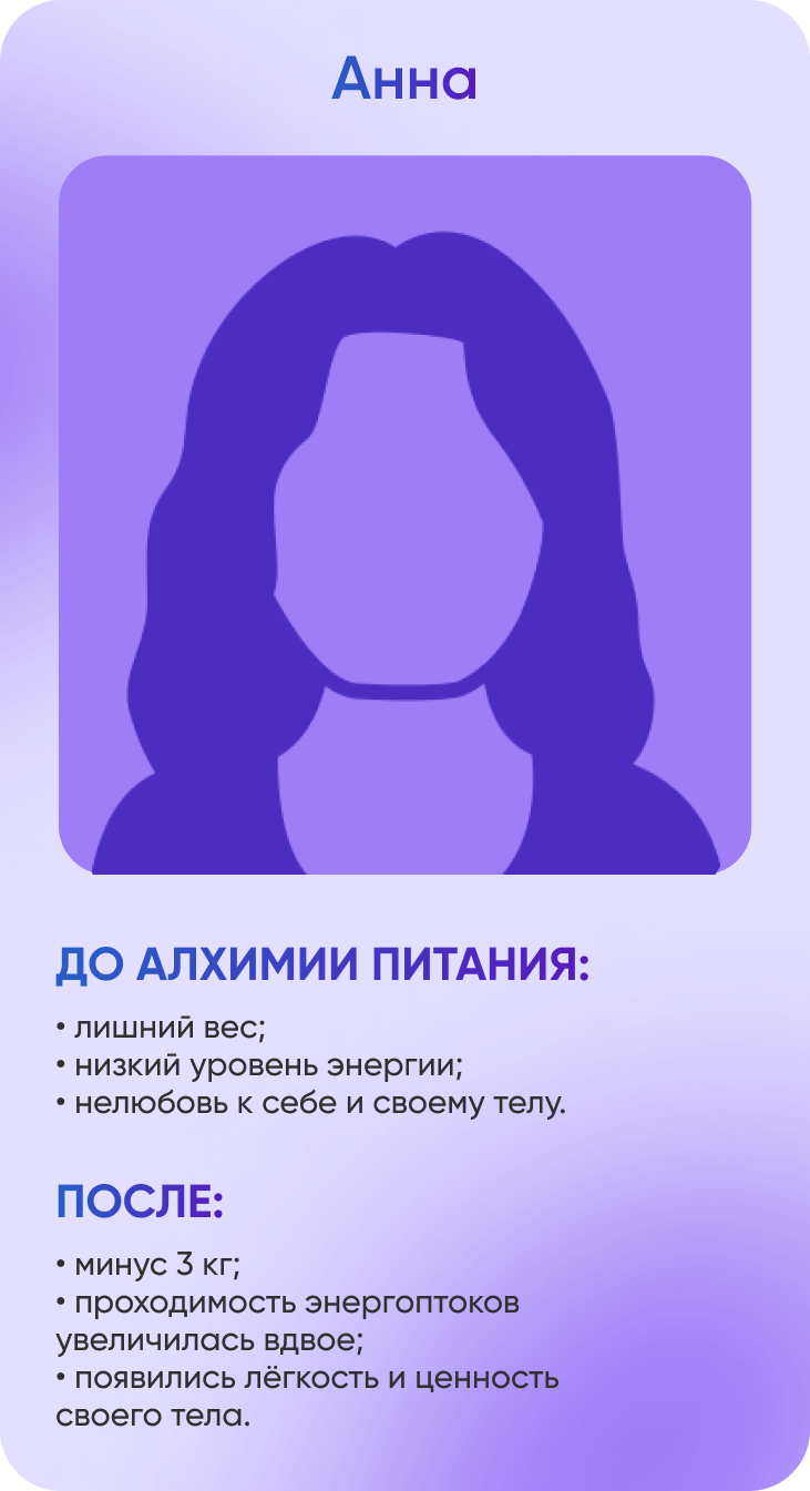 ✦ 3 индивидуальные онлайн-консультации с авторами системы Алхимия Питания